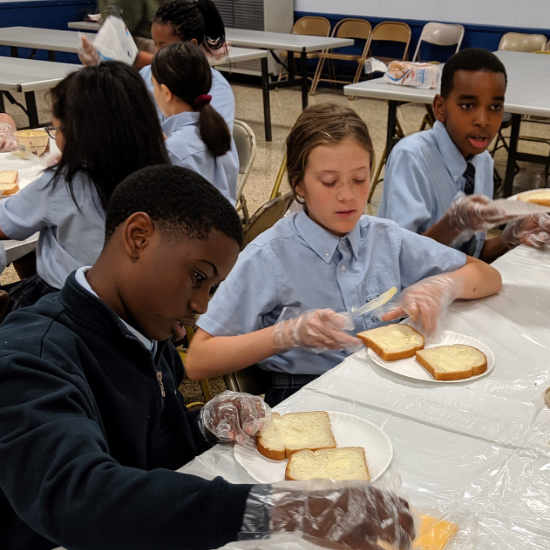 Our growing, faith-filled community is founded upon daily religious instruction, classroom and school-wide prayer, monthly First Friday Mass, service learning, and participation in the New Evangelization initiatives.
